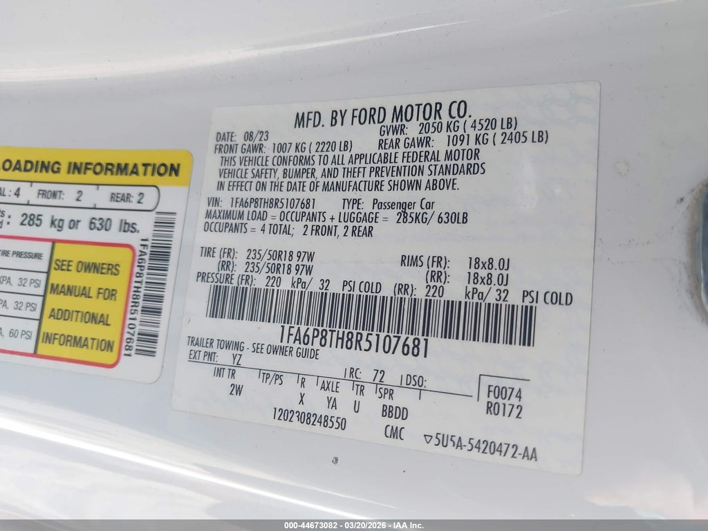 Ford MUSTANG 2024. Лот с площадки IAAI, рынок 🇺🇸 США, 2024 года, Бензин, 2.3 л, Автомат, Задний, 47,288 миль.